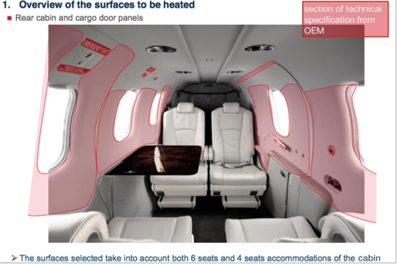 目前,飛機艙室內(nèi)部加熱系統(tǒng)使用的還是空調(diào)系統(tǒng),坐在窗口附近的乘客通常會有低溫的感覺,也包括艦船上的艙室中腳腿部寒涼感受,都是整個艙室溫度不夠均衡導(dǎo)致。Villinger研發(fā)的LiteHeat?艙室內(nèi)部..